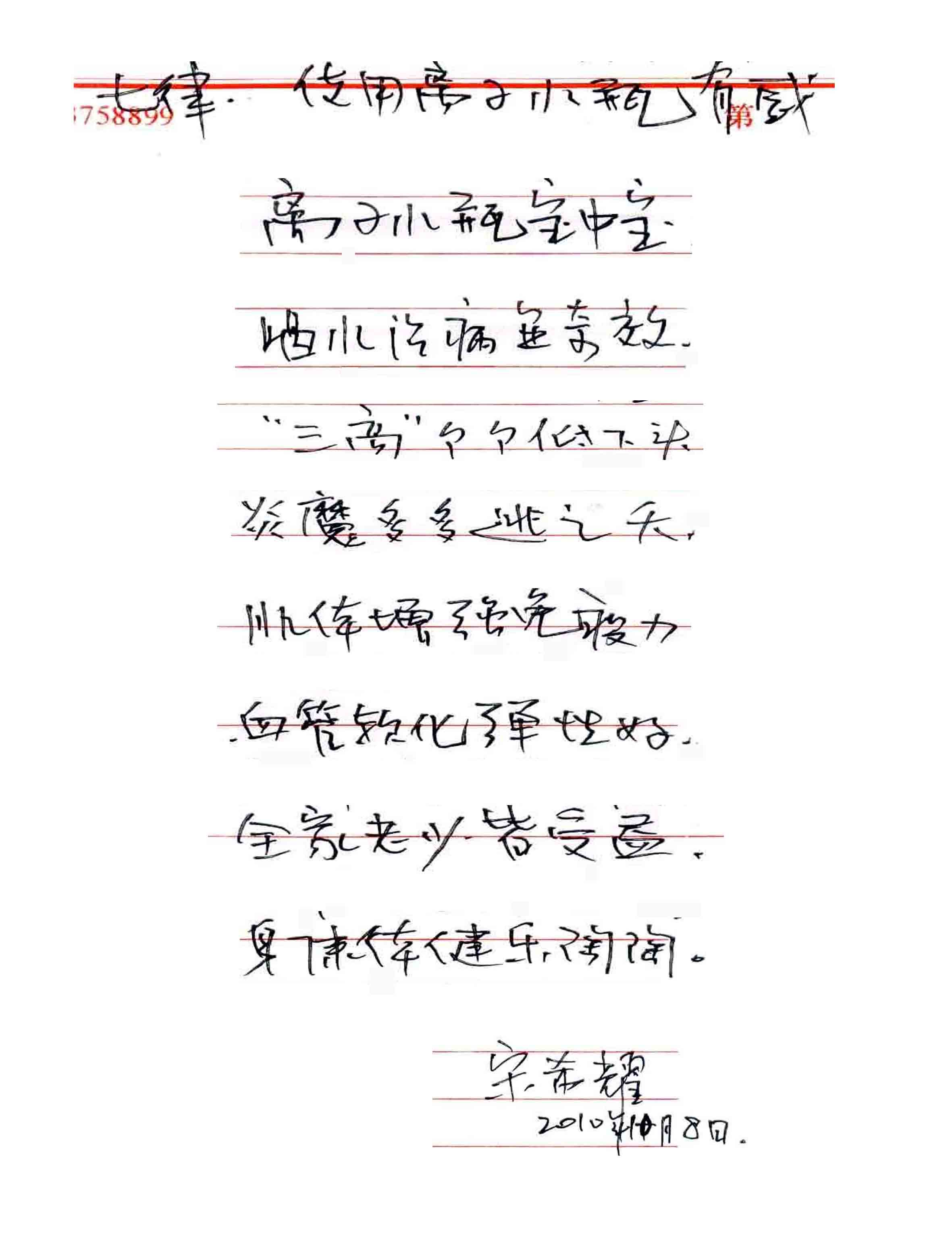 1.我公司收到您反映良好效果的信件之后,如果您的病情對比寫得清楚,具有代表性,能啟發(fā)更多的病友使用,我公司將在文章和書籍中引用,并上網發(fā)布,以促進更多的同胞相信和使用這一產品,使它能為更多人造福。假如您告知冠心病、糖尿病、腎衰、塵肺病或中風癱瘓已痊愈,請?zhí)峁┠卺t(yī)院確診患病后的證明和痊愈后的心電圖與檢驗報告等復印件做為證據,并請贈給一張您的半身照片,使全國讀者覺得確鑿可信,再介紹一位親友購購買,將送給你一個紅包,
